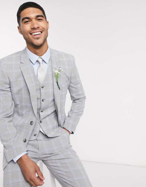 Asos Design Wedding Skinny Suit Jacket In Blue And Grey Windowpane Check Asos