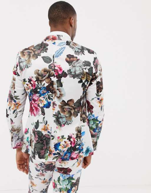 Asos Design Wedding Skinny Suit Jacket With Floral Print Asos