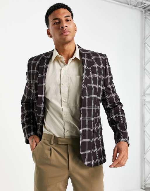 Asos Design Wedding Skinny Suit Jacket With Window Check In Burgundy Asos