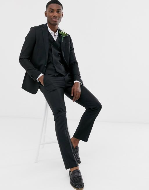 Asos Design Wedding Slim Suit Waistcoat In Black 100 Wool Asos