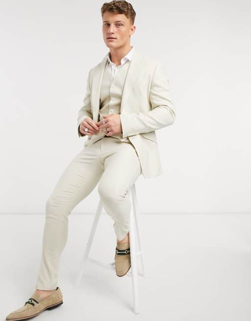 Asos Design Wedding Super Skinny Suit Pants In Stone Micro Texture Asos