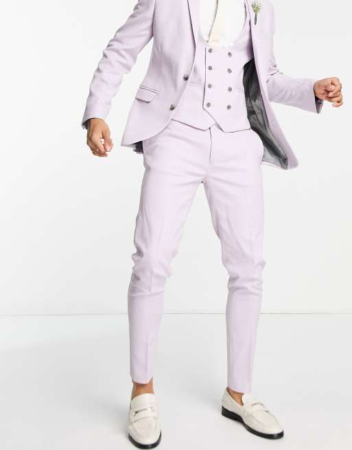 Asos Design Wedding Super Skinny Suit In Lavender Frost Micro Texture Asos