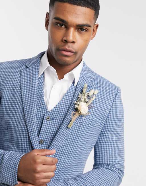 Asos Design Wedding Super Skinny Wool Mix Suit Jacket In Blue Houndstooth Check Asos